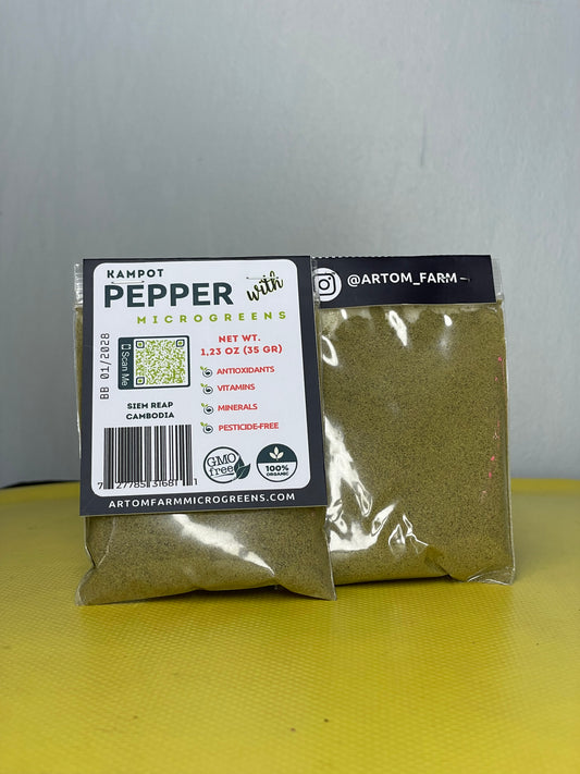 Black Kampot Pepper Mix with Dried Microgreens (Sunflower, Radish, Spinach) - 35g